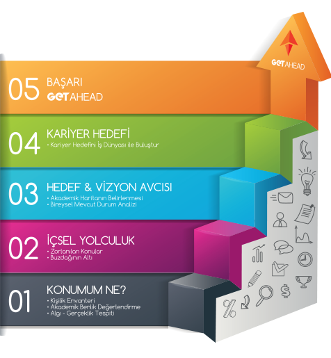 Danışanın kariyer yaşamına ve hayatının bütününe dair potansiyel kaynaklarını ortaya çıkarmaya destek oluyoruz. Bireylere hayattan beklentilerini belirledikleri, kişisel yetkinliklerini artırdıkları, zihinsel ve ruhsal yönlerini keşfedip güçlendirdikleri bir gelişim programı sunuyoruz. Get Ahead, danışanların şu anda yaşadıkları sorun alanları her ne olursa olsun mevcut durumundan istediği duruma ulaştırmayı kolaylaştıran, kendi mükemmeline ulaşmalarına destek veren değişim ve gelişim sürecinin mimarıdır.